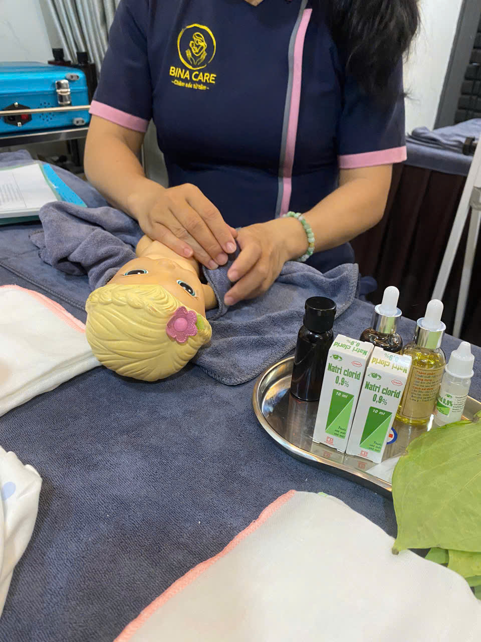 Trong suốt quá trình học, học viên sẽ được hướng dẫn chi tiết từng bước trong quy trình tắm bé chuẩn y khoa, từ khâu chuẩn bị như kiểm tra nhiệt độ nước, môi trường xung quanh, đến các kỹ thuật tắm an toàn như vệ sinh mắt, mũi, tai, gội đầu và tắm toàn thân đúng cách. Bên cạnh đó, học viên còn được học cách giữ ấm cho bé, chăm sóc rốn, nhận biết các dấu hiệu bất thường và xử lý tình huống khi bé quấy khóc hoặc không hợp tác.